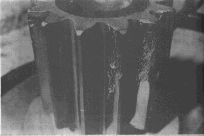 弧齒錐齒輪輪齒上的嚴重膠合。有時這種損傷引起工作溫度升高。