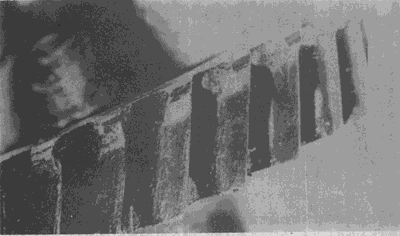 在這幾個輪齒上由于齒輪傳遞的載荷集中于靠近一端的一小部分齒面上,因而造成齒面嚴重點蝕,從而導致其下一輪齒疲勞折斷。