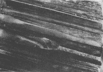 輪齒的滾壓塑變。圖為一從動齒輪,其齒面上工作節(jié)曲面附近明顯的隆起清晰可見。