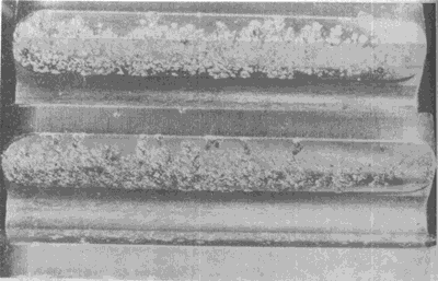 大齒輪齒面的初期點蝕。點蝕密度最大區(qū)與表面載荷最高區(qū)相一致。