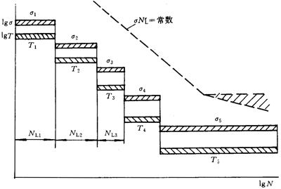 各應(yīng)力水平區(qū)間的接觸應(yīng)力σHL和彎曲應(yīng)力σFL分別按式(B4)、(B5)計算,大、小輪應(yīng)分別計算。