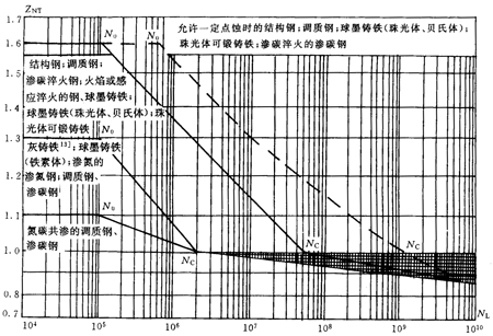 條件循環(huán)次數(shù)Nc是齒輪材料S-N(即應(yīng)力-循環(huán)次數(shù))曲線上一個特征拐點的循環(huán)次數(shù),并取該點處的壽命系數(shù)為1.0,相應(yīng)的S-N曲線上的應(yīng)力稱為疲勞極限應(yīng)力。
