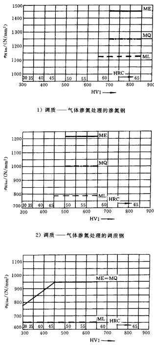 在σHlim和σFlim的圖中,給出了代表材料質(zhì)量等級的三條線,其對應(yīng)的材料處理要求見GB8539。