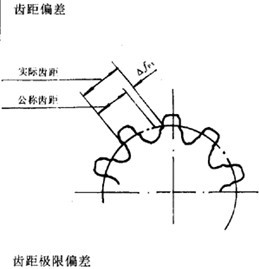 在檢查圓上,實(shí)際齒距與公稱齒距之差