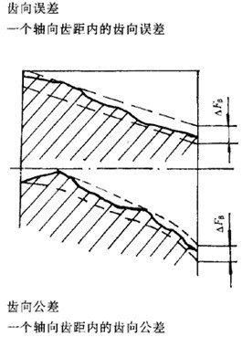 要檢查圓柱面上,在有效齒寬范圍內(nèi)(端部倒角部分除外),包容實(shí)際齒向線的兩條最近的設(shè)計(jì)齒線之間的端面距離