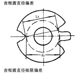 齒根圓直徑實(shí)際尺寸和公稱尺寸之差,對(duì)于奇數(shù)可用齒根圓斜徑代替。斜徑的公稱尺寸Lf為: