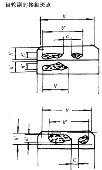 沿齒長(zhǎng)方向:接觸痕跡的長(zhǎng)度  (扣除超過(guò)模數(shù)值的斷開(kāi)部分C)與工作長(zhǎng)度  之比的百分?jǐn)?shù),即