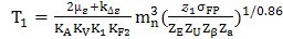 式(B1)與正文的公式(3)等效,其符號意義及取值同公式(3)。σHP應(yīng)取大輪或小輪的小值代入式(B1)。對于人字齒輪,( )按單側(cè)齒寬計(jì),算得的T1值為單側(cè)齒寬的名義轉(zhuǎn)矩。