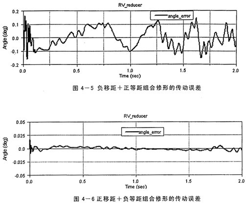 分析采用修形量及得到的空程角誤差值見(jiàn)表4-1,由表中的結(jié)果統(tǒng)計(jì)的得出正移距+負(fù)等距組合修形的誤差值要小于其它兩種組合修形的值,可以羅好地滿(mǎn)足設(shè)計(jì)要求。