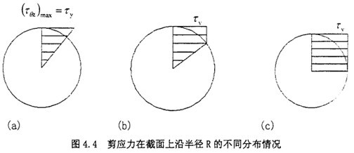 此時剪應力在截面上沿半徑R的分布情況見如圖4.4(b)所示。