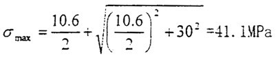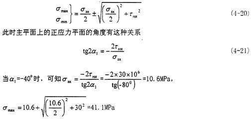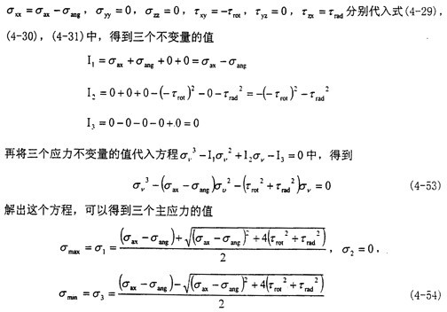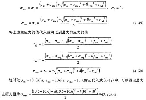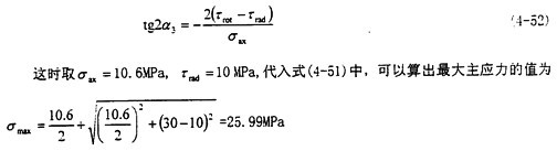 這時取σax=10.6MPa,τrad=10MPa,代入式(4-56)中,可以得出最大主應力值為