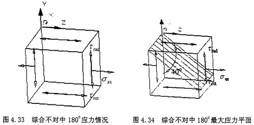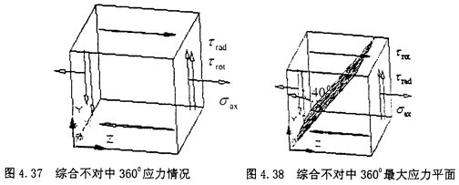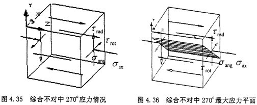 由式(4-39)可知,最大應力平面剛好在垂直于正弦矢量相加的方向。這與徑向不對中90°位置的情況有些相似。