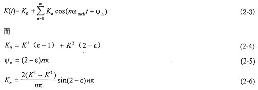 式中:ε——重合度;ωmeh——齒輪嚙合頻率;Kn——齒輪剛度諧波項(xiàng);K1——單對齒嚙合剛度;K2——兩對齒嚙合剛度;Ψn——齒輪剛度諧波項(xiàng)相位。