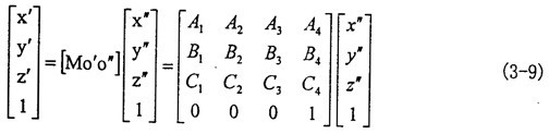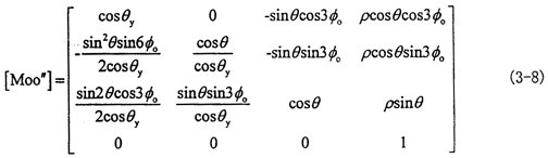 (3-7)式中A1、A2、A3、A4、B1、B2、B3、B4、C1、C2、C3、C4等于其在矩陣[Mo′o″]中對(duì)應(yīng)位置的表達(dá)式。