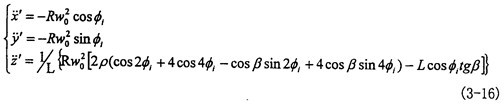 由曲線圖3-14可以看出,小桿球面中心P沿軸頸的線加速度,變化頻率為一個(gè)回轉(zhuǎn)周期2次。隨兩軸夾角β的增大其最大值增長(zhǎng)較快,它的值可以作為動(dòng)力分析和設(shè)計(jì)計(jì)算的重要依據(jù)。