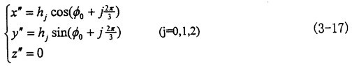 為求出這個(gè)參數(shù)方程,我們必須解決動(dòng)坐標(biāo)系O″X″Y″Z″同定坐標(biāo)系OXYZ之間的坐標(biāo)變換矩陣[Moo″]。