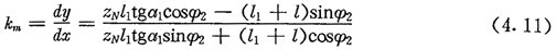 中段修形曲線的切線斜率km可由(4.6)式求得: