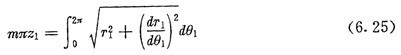 由于每個(gè)周期的弧長(zhǎng)都是相等的,太陽(yáng)輪節(jié)曲線的總長(zhǎng)等于n1個(gè)周期的弧長(zhǎng)之和,用n1乘以(6.24)兩邊,可得等分條件的另一種表達(dá)形式: