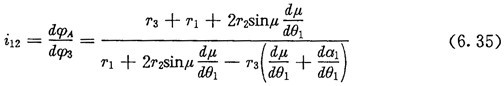 為了得到機(jī)構(gòu)不發(fā)生運(yùn)動(dòng)干涉時(shí)的最大 值,將(6.42)式中的小于號(hào)換成等號(hào),并將 代入,對(duì)于橢圓形太陽(yáng)輪,得到下面等式: