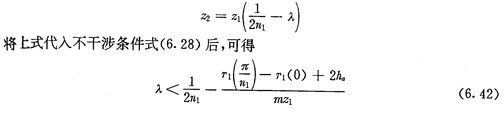 從(6.37)、(6.38)、(6.43)三式所組成的方程組中,解出a、b及z2,將齒數(shù)代入( 6.40)便得到臨近發(fā)生運(yùn)動(dòng)干涉時(shí)的 值。因?yàn)閦2是整數(shù),當(dāng)m給定后,由上面三個(gè)式子所組成的方程組一般是無(wú)解的。若把m也作為一個(gè)參變數(shù),這時(shí)方程有解。