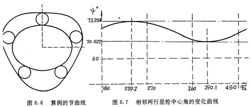 節(jié)曲線形狀如圖6.6所示。圖6.2為該輪系加上輪齒后的情形。按(6.34)式可算得相鄰兩行星輪之間的夾角隨 的變化規(guī)律,其關(guān)系曲線如圖6.7所示。由曲線圖可看出,當(dāng) 時(shí),夾角 有最小值 ,夾角 的變化范圍是2.732°。