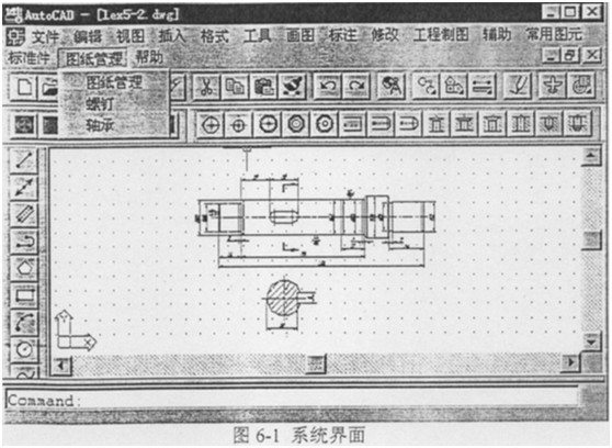 提取常用結(jié)構(gòu)單元(軸套類、叉架類、盤蓋類、箱體類、螺紋聯(lián)結(jié)類等),并全部建立參數(shù)化繪圖程序。用通用CAD系統(tǒng)直接繪制的圖形是以實(shí)體(如點(diǎn)、線、圓弧等)為單位管理的,圖形修改、查詢很不方便。本系統(tǒng)通過定義擴(kuò)展實(shí)體數(shù)據(jù)(XData)實(shí)現(xiàn)了全部的圖形結(jié)構(gòu)化管理,將具有工程意義的結(jié)構(gòu)圖形定義為圖元,大大提高了設(shè)計效率。