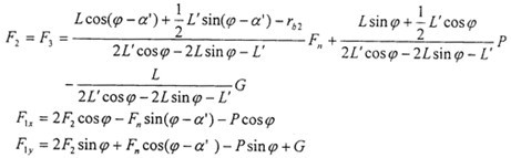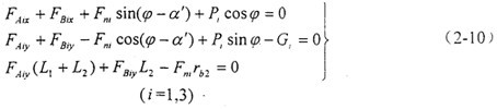 如果不計兩上支承軸重力的影響,則兩上支承軸O2B、O3C可看作二力桿,它的作用力如圖所示。不考慮制造誤差和載荷分配不均勻因素的影響,可以補(bǔ)充方程:F2=F3,則聯(lián)立求解得到: