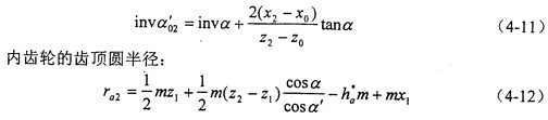x1、x2——分別為外、內(nèi)齒輪的徑向變位系數(shù)。