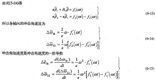 由于減速器機(jī)構(gòu)的變形及各構(gòu)件的誤差,使各傳動(dòng)軸的角速度及角加速度不再滿足條件式(6-8)及式(6-9),亦在運(yùn)轉(zhuǎn)過(guò)程中各軸之間存在角速度及角加速度的沖擊現(xiàn)象。該沖擊將直接導(dǎo)致系統(tǒng)振動(dòng),使輸出速度產(chǎn)生波動(dòng)、降低其輸出的穩(wěn)定性,并產(chǎn)生沖擊載荷。