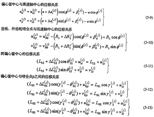 當(dāng)只考慮行星軸承變形和內(nèi)齒圈變形時,式(5-18)及(5-19)就變成(3-11)、(3-14)。
