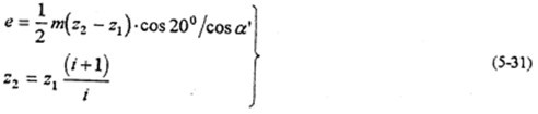 由上式知,當(dāng)齒數(shù)差Z2-Z1越小或傳動比i越大時,偏心距e越;壓力角越大時,偏心距e越大,則選用的行星軸承尺寸大,齒板高速軸承孔徑也就大。圖5-17是傳動比、壓力角、以減速器行星軸承載荷的影響。由圖可見,傳動比的變化對減速器的動力性能影響極大;傳動比越大,則偏心距越小。由式(5-30)分析得,行星軸承載荷必須大。壓力角的變化,對行星軸承載荷影響小得多。