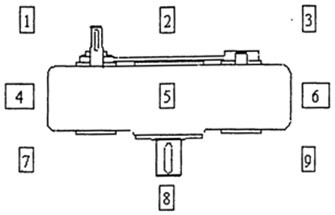 在減速器的噪聲測(cè)量中(見圖4.4),分別對(duì)減速器空間九個(gè)特定點(diǎn)*,在A計(jì)權(quán)網(wǎng)絡(luò)下測(cè)量其聲壓級(jí)的大小,表4.7中的數(shù)據(jù)為該減速器的平均聲壓級(jí);在減速器的振動(dòng)測(cè)量中,主要對(duì)輸入和輸出軸進(jìn)行振動(dòng)(位移、速度、加速度)測(cè)量以及分析,下表中的數(shù)為該減速器的最大位移量,即輸入軸的。