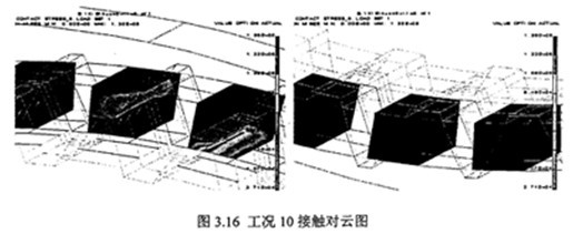 綜合以上誤差分析,將環(huán)板與輸出齒輪軸按極限偏差尺寸所定的位置進行輪齒嚙合裝配,然后進行有限元接觸分析。