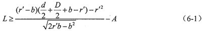 由于球狀銑刀的刀刃部分為半球頭形狀,為避免球頭銑刀的刀柄與殼體內壁發(fā)生干涉,導致內空間正弦滾道被銑削出平面,則空間正弦曲線的平衡位置到殼體端面的距離L應滿足一定的條件,由圖6-2中各參數(shù)的關系,可以得到