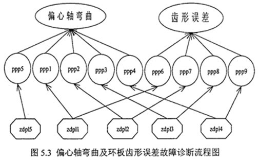 根據(jù)以上分析,本文用圖形化的智能故障診斷預報系統(tǒng)(INCON FIDPS), 建立了雙環(huán)減速器偏心軸彎曲及環(huán)板齒形誤差兩種故障的推理流程。如圖5.3 所示。