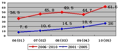 “十一五”期間的2010年與2006年相比
