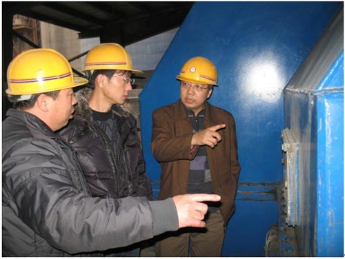 (南高齒質(zhì)量萬里行人員在現(xiàn)場(chǎng)傾聽減速機(jī)運(yùn)行時(shí)是否有異常噪音)