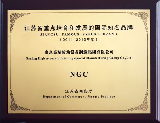 江蘇省商務(wù)廳于2011年8月15日上午在南京狀元樓酒店隆重召開全省出口品牌工作會議,省領(lǐng)導(dǎo)、省商務(wù)廳及省有關(guān)單位領(lǐng)導(dǎo)為“2011-2013年度江蘇省重點培育和發(fā)展的國際知名品牌”企業(yè)授牌,南京高精傳動設(shè)備制造集團有限公司(以下簡稱:南高齒)位列其中。