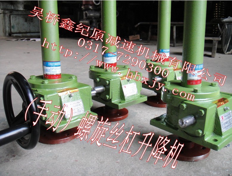 螺旋絲杠升降機是一種基礎起重部件,符合JB/T8809—1998原QWL蝸輪絲杠升降機符合(JB/ZQ4391—86)標準。該產(chǎn)品可廣泛用于機械、冶金、建筑、化工、醫(yī)療、文化衛(wèi)生等各個行業(yè)。承載能力2.5—120T。具有結(jié)構(gòu)緊湊、體積小、重量輕、動力源廣泛、噪音小、安裝方便、使用靈活、功能多、配套形式多、可靠性高、使用壽命長等優(yōu)點。具有提升、降落、推進、翻轉(zhuǎn)等功能,可以單臺或組合使用。能按一定程序準確地控制調(diào)整提升或推進的高度,可以用電動機或其它動力直接帶動,也可以手動。最高輸入轉(zhuǎn)速1500r/min,最大提升速度2.7m/min。有不同的結(jié)構(gòu)型式和裝配方式,提升高度按用戶的要求制造。該裝置可以自鎖,QWL蝸輪絲杠升降機" target=_blank>絲杠升降機是一種基礎起重部件,其符合JB/Z04391-86標準,是將蝸輪減速器和絲杠螺母副等巧妙地結(jié)合在一起組成的一個運動組合單元。它既可以單獨使用,又可以象拼積木似地通過聯(lián)接件快捷組合,實現(xiàn)物體的升降、往復、翻轉(zhuǎn)等運動。 QWL蝸輪絲杠升降機作為一種功能部件已被廣泛應用于各行各業(yè)。例如:機械行業(yè)的傳動裝置、數(shù)控執(zhí)行裝置;冶金行業(yè)的軋輥運動裝置、煉鋼廠鋼包提升和翻轉(zhuǎn)裝置以及人所不能及的場所的運動傳遞裝置;鐵路車輛行業(yè)的車輛舉升架,大型柔性夾緊、轉(zhuǎn)位工裝、焊接機器人等;建筑行業(yè)的舉升裝置、大型門窗自動或遙控開啟裝置;水利等行業(yè)用閘門的開啟裝置、雷達及太陽能遙感裝置;醫(yī)療器械、升降舞臺及汽車制造業(yè)的舉升裝置;以及航空航天、國防軍事的傳動裝置等等。事實上,蝸輪絲杠升降機幾乎可以在任何需要實現(xiàn)機械位移傳的地方使用。