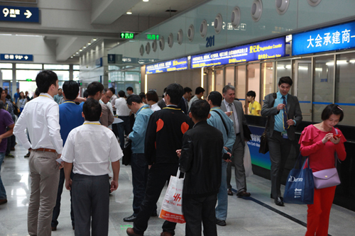 從觀眾報到處了解到,開展第一天接待的參觀采購團就多達(dá)10多個,比亞迪、富士康、佳能、美的集團、格力電器、TCL、松下、非晶材料企業(yè)參觀團等大型用戶企業(yè)均到場參觀采購。