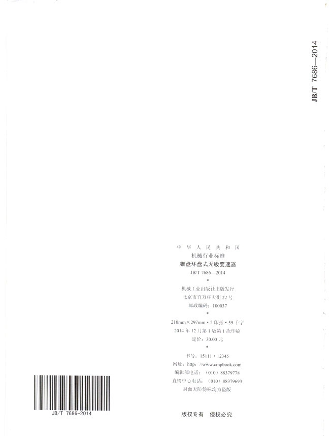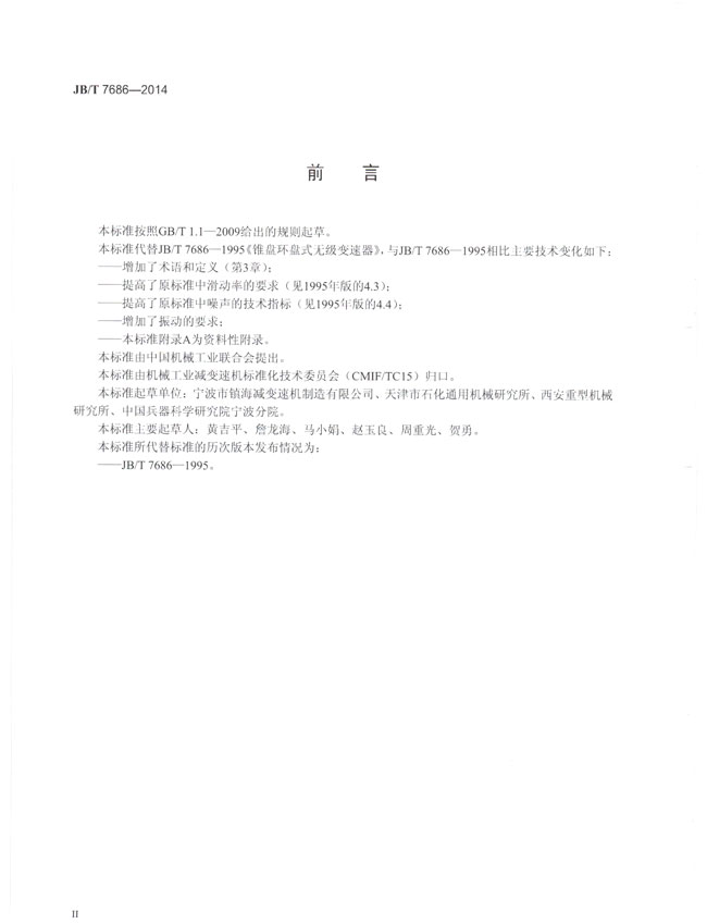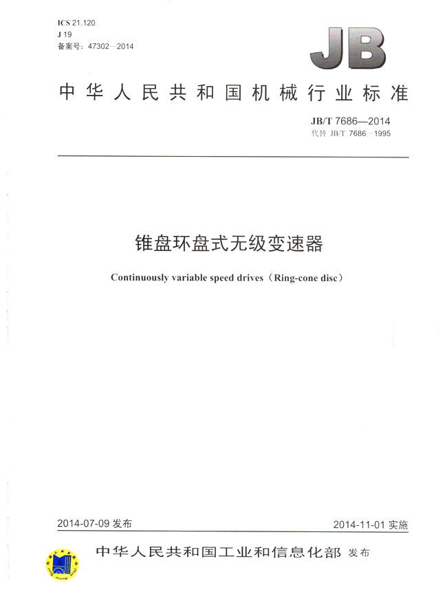 錐盤(pán)環(huán)盤(pán)式無(wú)級(jí)變速器(JB/T7686-2014)
