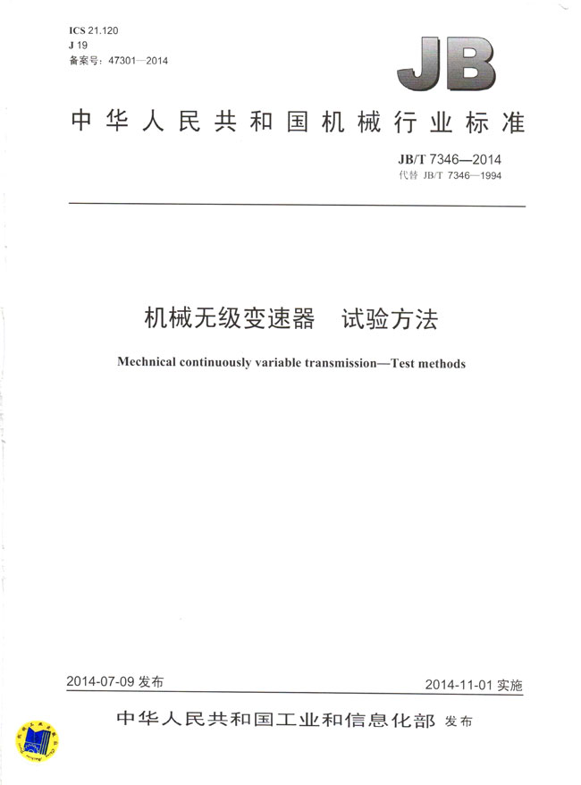 機械無級變速器試驗方法(JB/T7346-2014)