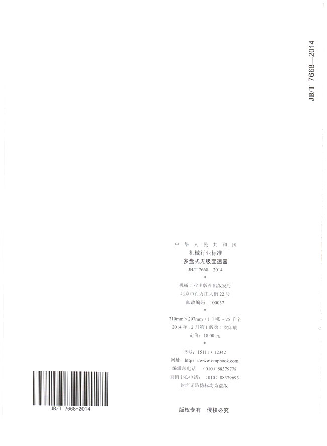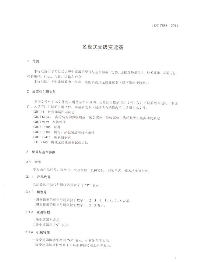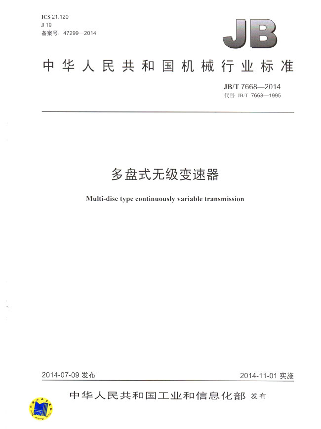 多盤式無級(jí)變速器(JB/T7668-2014)