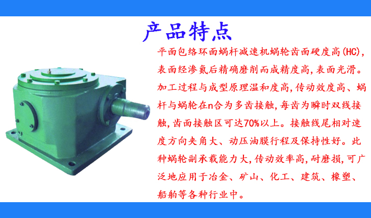 工作條件:蝸桿轉(zhuǎn)速不超過1500r/min;工作環(huán)境溫度為+40-40℃,當(dāng)工作環(huán)境溫度0℃以下時,啟動前滑油必須加熱到0℃以上,或采用低凝固點的潤滑油;當(dāng)環(huán)境溫度超過40℃時,需采取強迫冷卻措施。