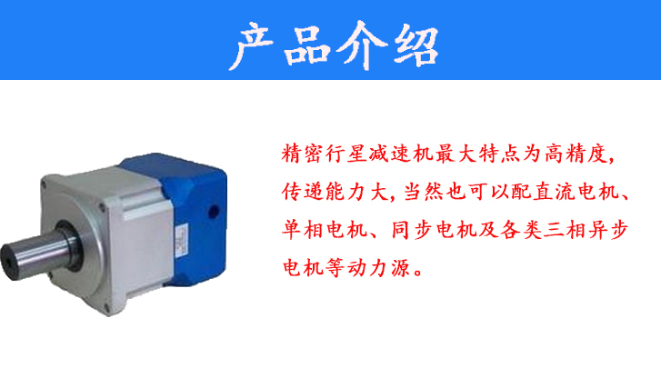 精密行星減速機(jī)最大特點(diǎn)為高精度,傳遞能力大,當(dāng)然也可以配直流電機(jī)、單相電機(jī)、同步電機(jī)及各類三相異步電機(jī)等動(dòng)力源。