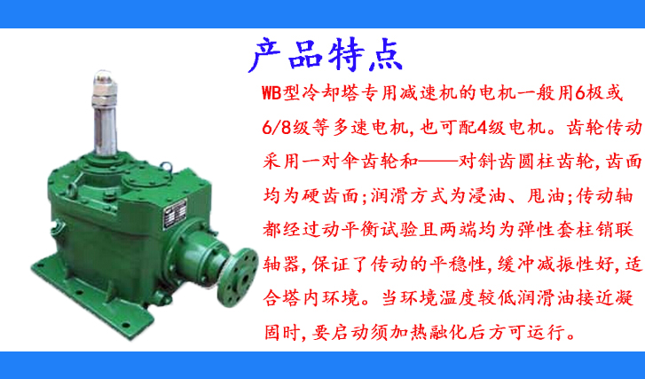 WB型冷卻塔專用減速機的電機一般用6極或/8級等多速電機,也可配4極電機。