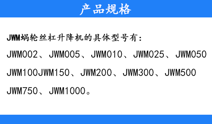 JWM0O2、JWM005、JWMO10、JWMO25、JWM050、JWM100、JWM150、JWM200、JWM300、JWM500、JWM750、JWM1000