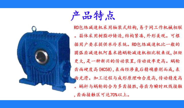 RD系列包絡(luò)減速機(jī)為齒輪傳動(dòng)與蝸桿傳動(dòng)復(fù)合而成的二級(jí)減速機(jī),具有承載能力大、傳動(dòng)效率高、使用壽命長。