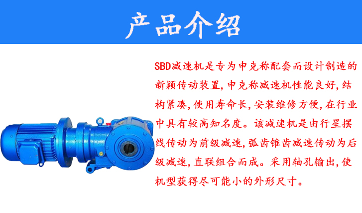 SBD減速機是專為申克稱配套而設計制造的新穎傳動裝置,申克稱減速機性能良好,結(jié)構(gòu)緊湊,使用壽命長,安裝維修方便,在行業(yè)中具有較高知名度。該減速機是由行星擺線傳動為前級減速,弧齒錐齒減速傳動為后級減速,直聯(lián)組合而成。采用軸孔輸出,使機型獲得盡可能小的外形尺寸。