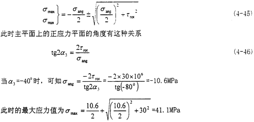 此時主平面上的正應(yīng)力平面的角度有這種關(guān)系:tg2α4=-∞,所以有α4=-45°或-135°,此時的最大應(yīng)力值為σmax=30MPa